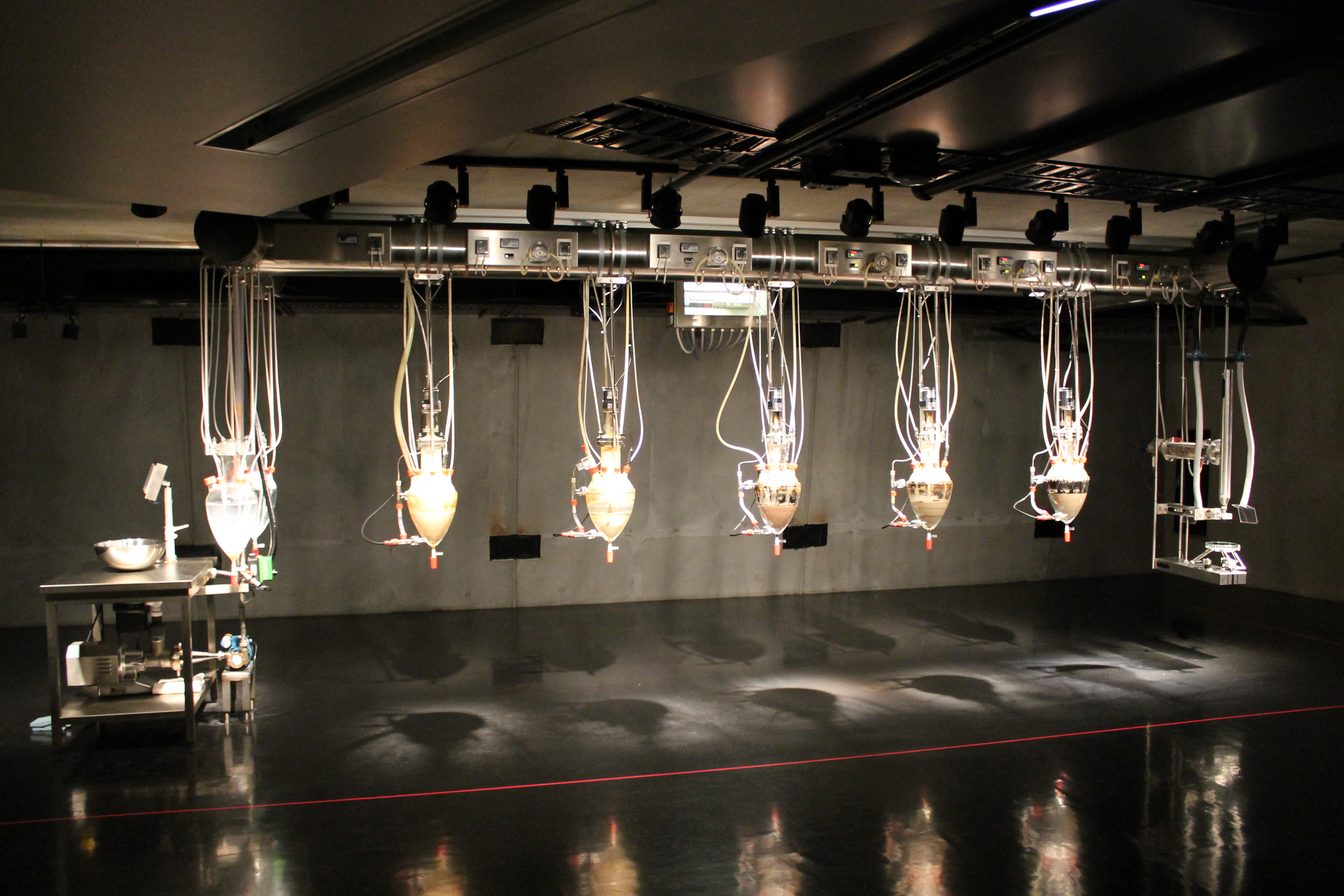 I’m not a fan of celebrity architect buildings in general, and museums in particular. I usually feel like the objects wind up competing with the building for your attention. MONA is a very different kind of experience. I can’t remember the last time I was in a building that appreciated it’s purpose so much. And it’s a strange building. Levels are stacked haphazardly upon each other, following the contour of the hill. Stairs lead hither and yon, and it’s easy to get turned around. But everywhere you turn, there’s something to see. And the spaces vary from dark to brightly-lit, industrial to naturalistic. MONA is always varied, but never dull. And throughout the museum, one runs into reminders of the hillside you’re inside. Big vertical slabs of exposed rock appear here and there, sensual to touch, and easy on the eye.