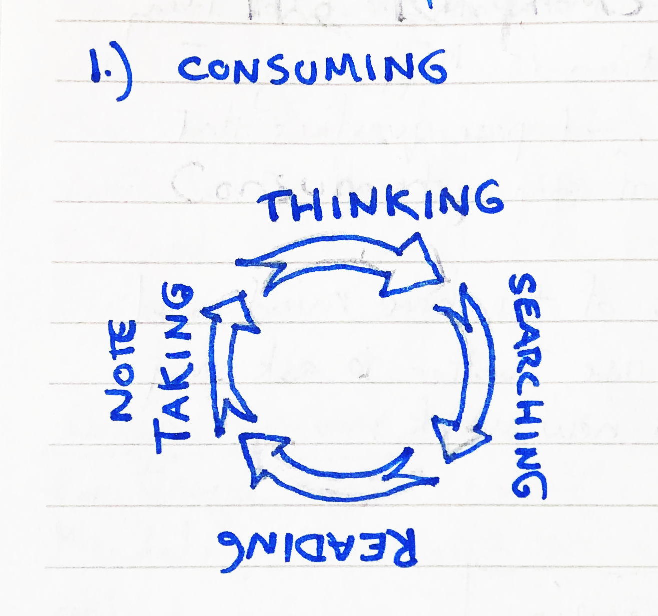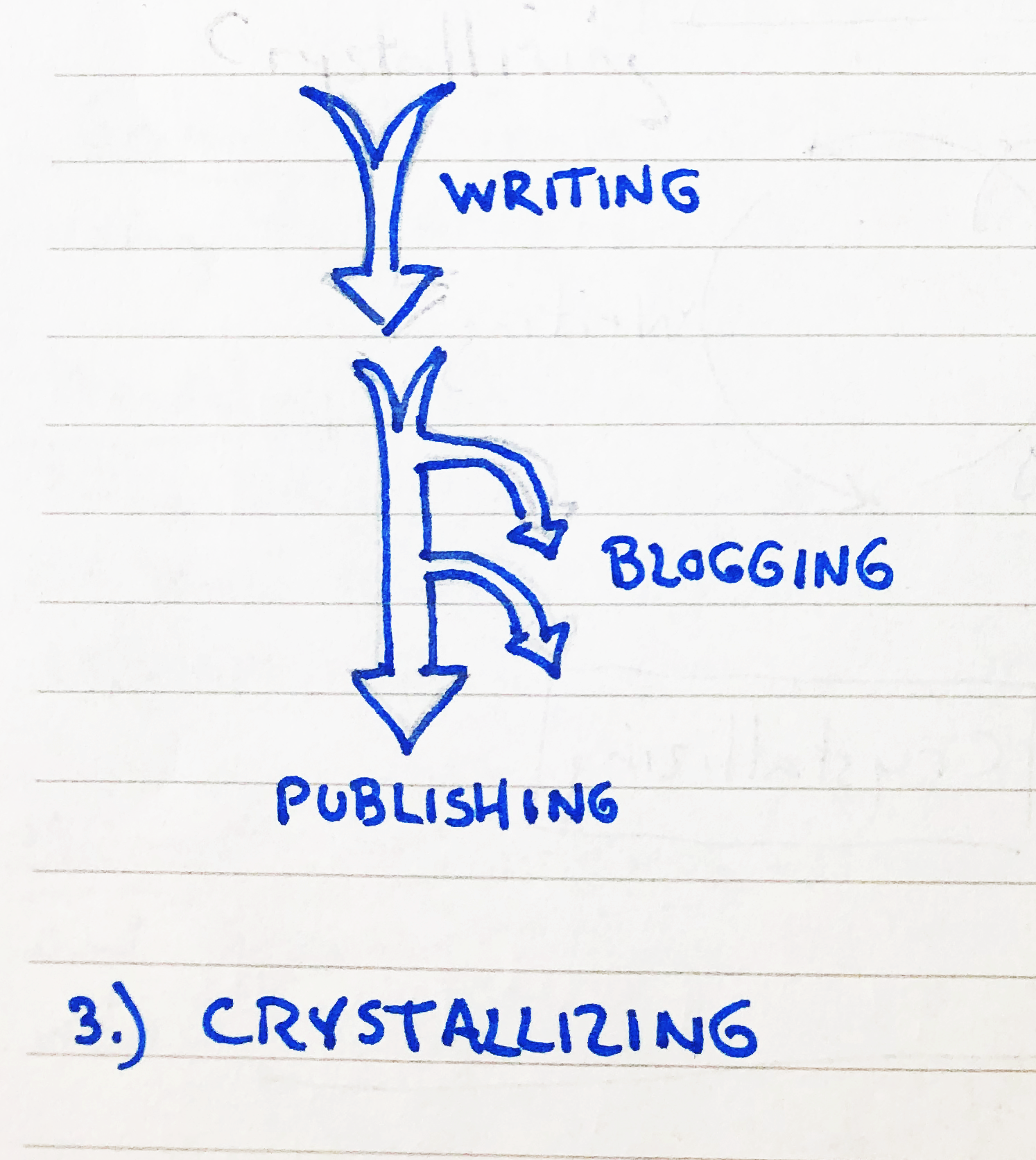 Knowing how I want to make this book was a big jumpstart to the process, and gave structure to big piece of the process, but that public part is only one part of the larger workflow. Part of the appeal for me as the author is the process, and personally, I want it to be as intentional as possible, so I spent some time pondering how I write, and how I’d like to write. As I mulled over all the various steps involved in trying to go from idea to book, I sketched out three different writing workflows that I tend to go through that fall in roughly sequential order, though with overlap. These are the major rhythms of this book.