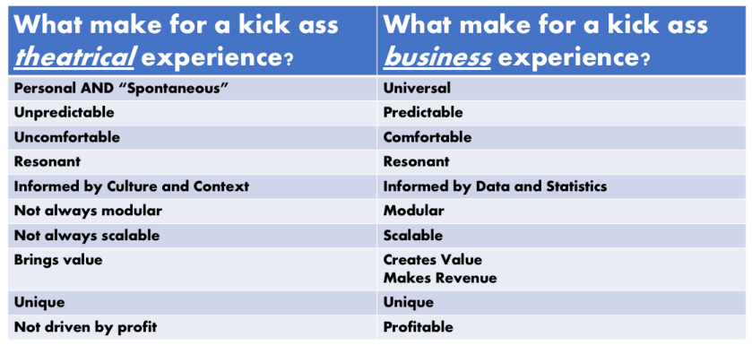 This theme of needing to resolve the unresolvable was a constant theme for me, as was the constant hunger for the immersive theatre folks for insights on how become profitable without sacrificing their vision. Lots of passion looking for answers where there no easy ones makes for lots of instantly intense conversations.